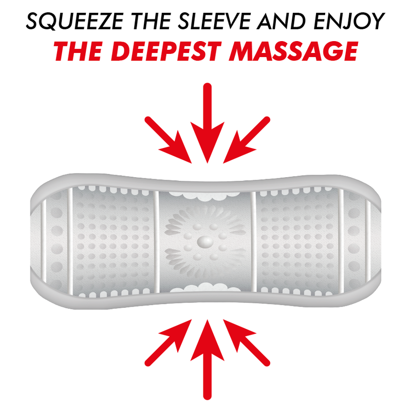 - Para maior sensação aperte a manga de masturbação
