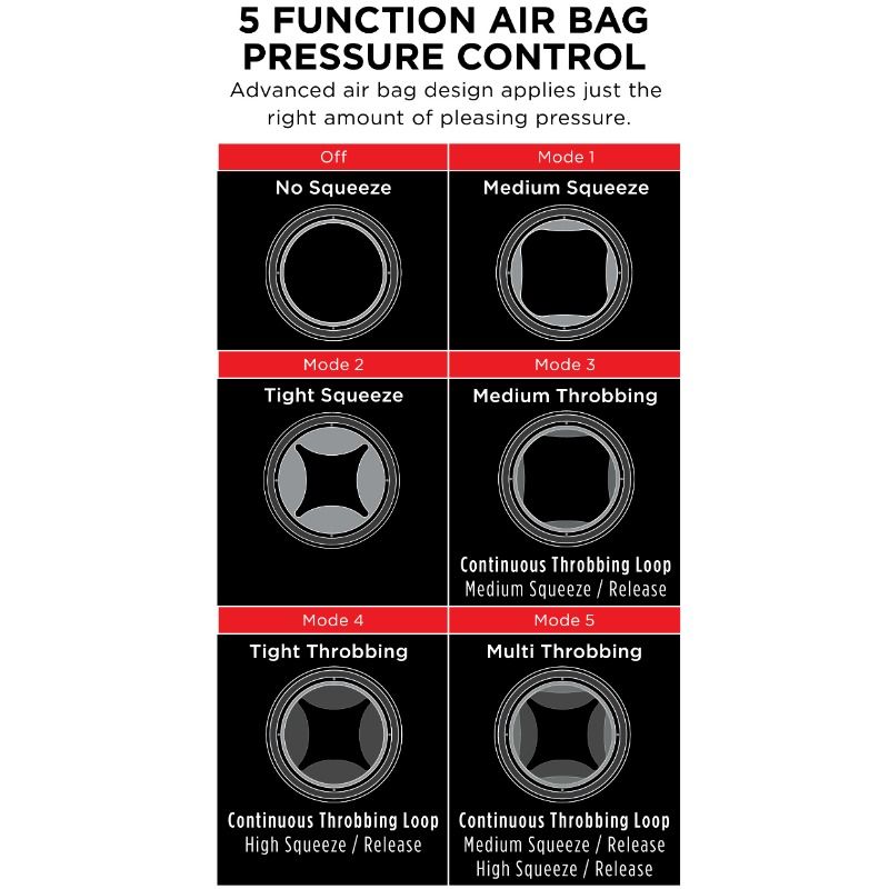 - Controle de pressão do air bag de 5 funções – O design avançado do air bag aplica a quantidade certa de pressão agradável. Pressione para ativar e segure por 3 segundos para liberar.