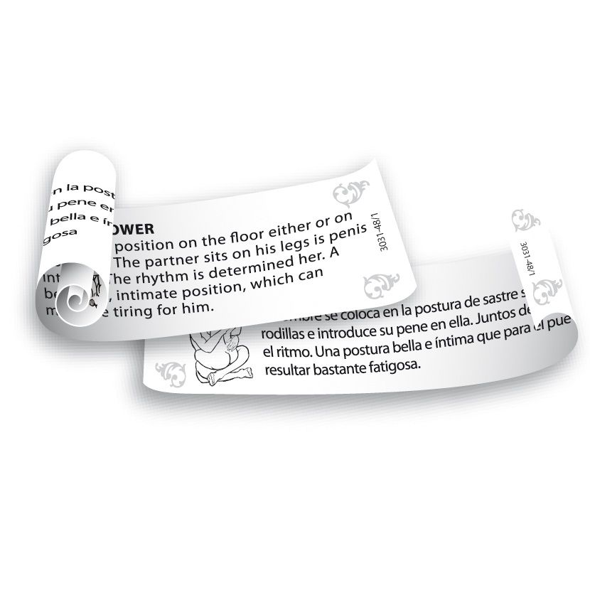 Uma sensação para você e seu parceiro! Usando a pinça, você escolhe um pergaminho do coração. Qual posição erótica você vai tentar? Será o passeio da deusa, o barco do amor ou a adoração? Aceite o desafio e experimente prazer e intimidade juntos.